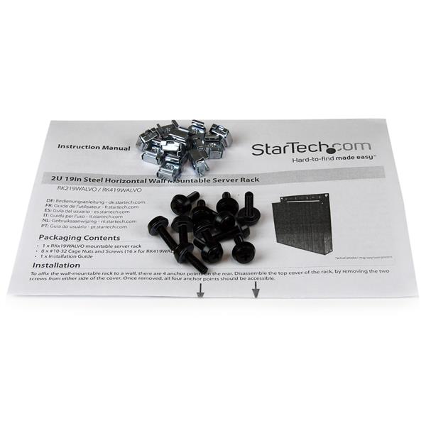 The rack is constructed to EIA-RS310 standards and allows equipment to be mounted horizontally, leaving the front and back open for easy access to LEDs, configuration buttons and cabling. Alternatively, with the included bottom cover plate, your equipment can be mounted vertically; non-rackmount equipment can be installed using the rack as a wall case. The bracket mounting holes (used to mount to a wall or the desk underside) are positioned at exactly 16-inches apart, matching standard construction stud measurements for easy installation. Backed by a StarTech.com Lifetime warranty.Features